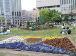 花と庁舎。庭はきれいに整備されてあります。