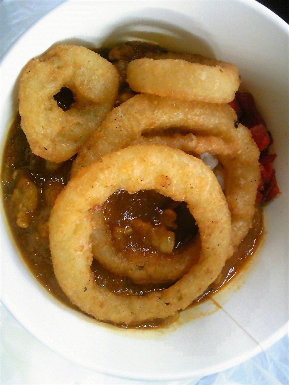 こちらは中山家のコク甘インドカレー。辛すぎず甘すぎず、意外に食べやすかったです。オニオンリングも◎。こういう球場での食事はあまりいいイメージがなかったのですが、案外おいしいものですね。