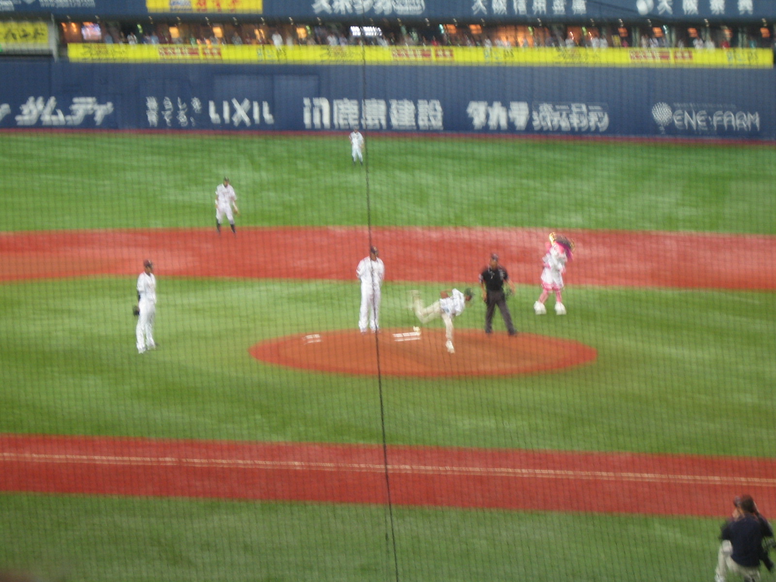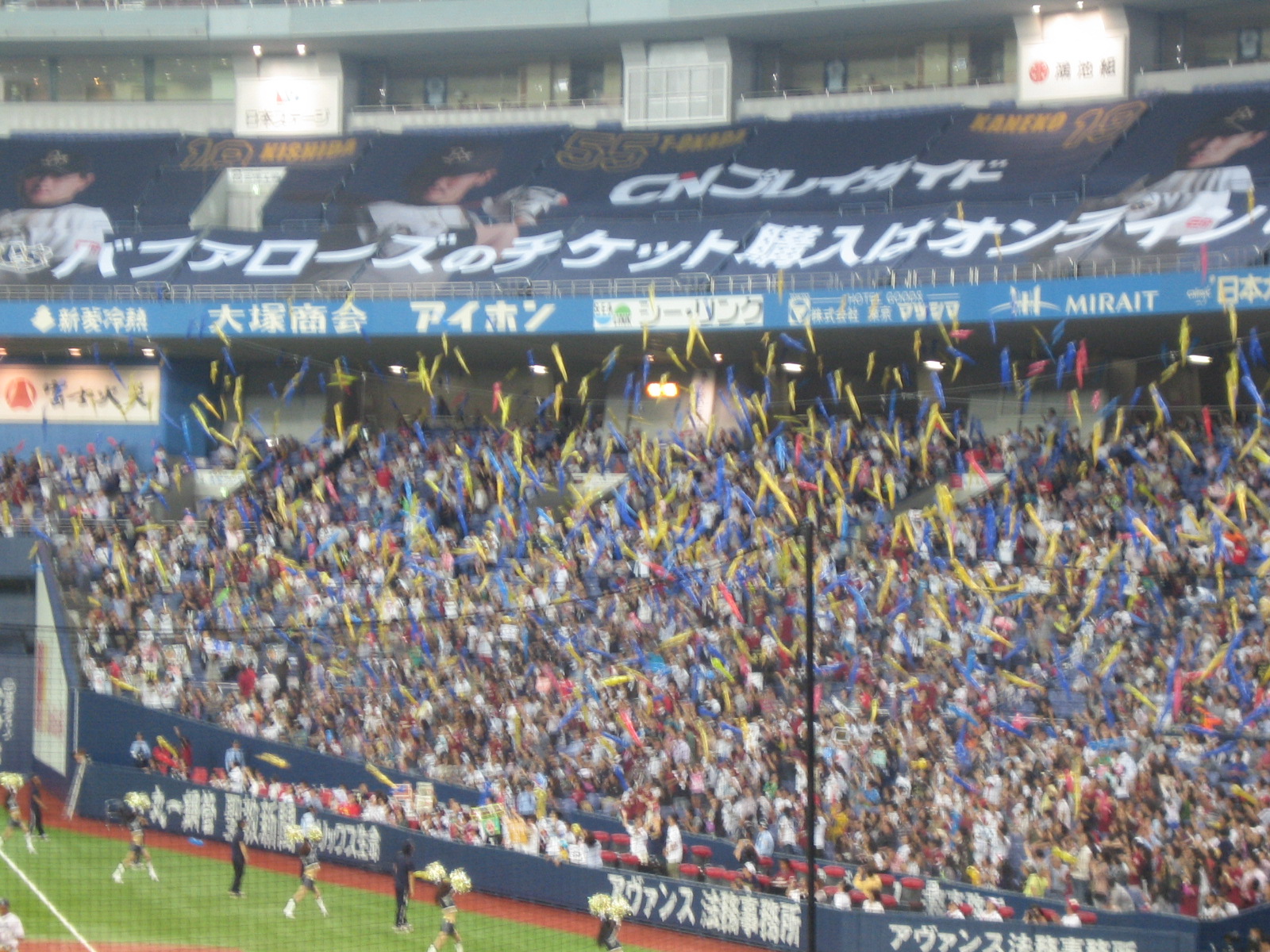 が、その裏、1番深江のヒットから、T・デホの連打でいきなり得点。周囲の中島や涌井ユニの大きなため息に囲まれながら、こそこそ応援するつもりが思わずメガホンを打ちならしてしまいます。隣の西武ファンも脱力。