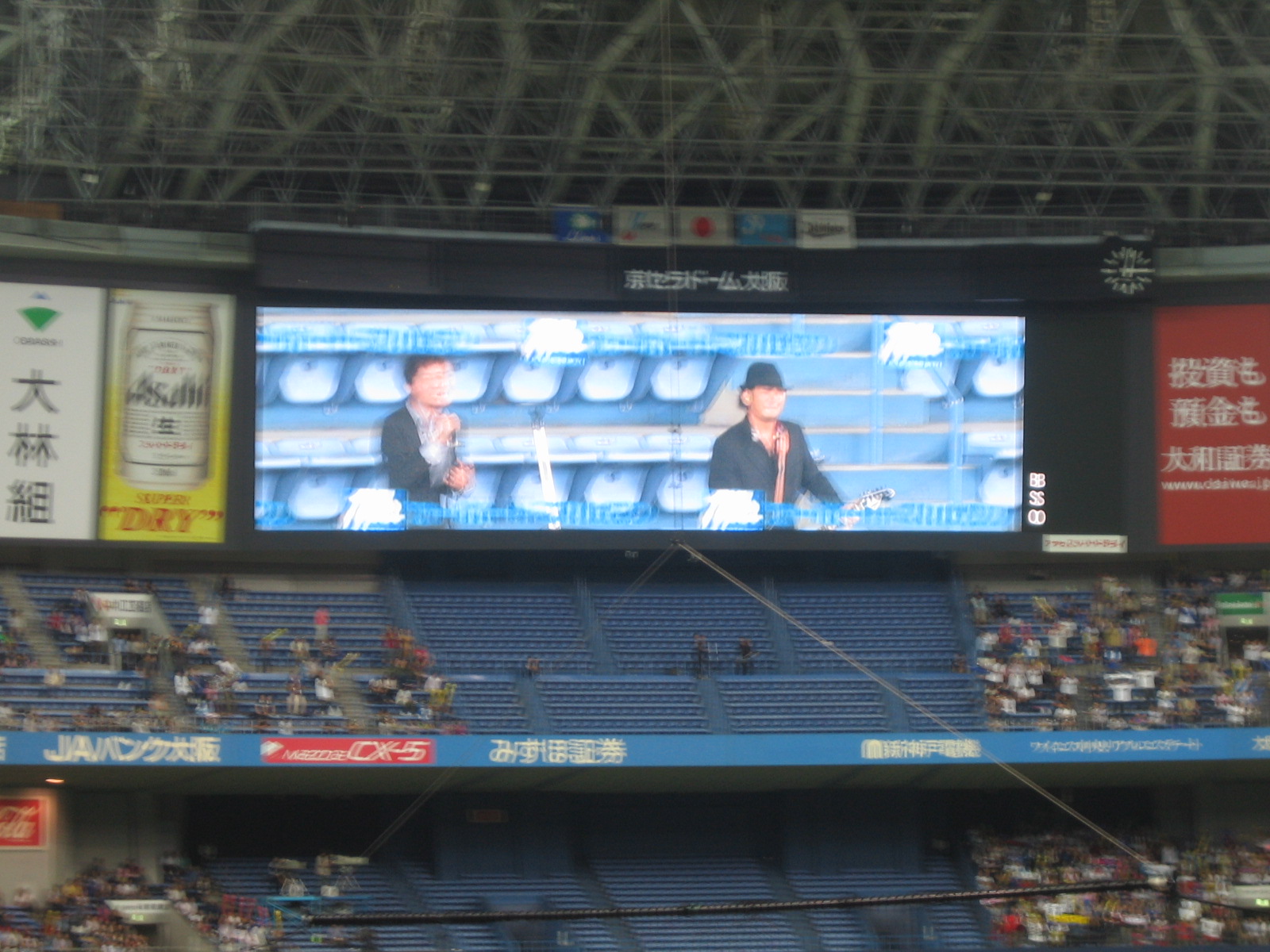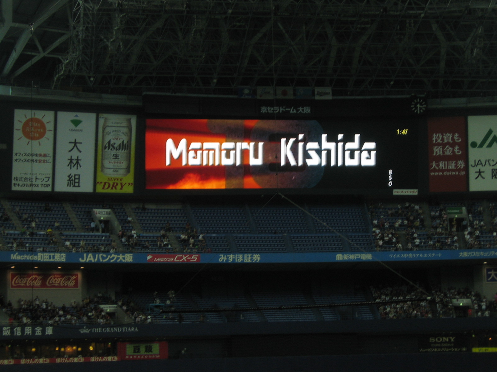 ビジョンで紹介されたBs総選挙。北川選手の初ヒットor優勝決定ホームラン、もちろん後者の圧勝です。